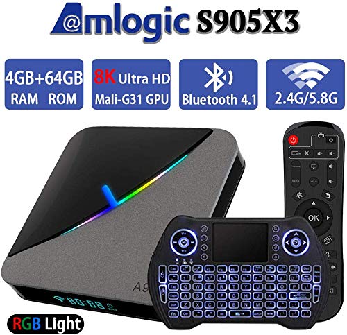 Android TV Box 9.0 4GB RAM 64GB ROM Set Top Box Smart TV Box Amlogic S905X3 USB 3.0 Ultra HD 8K HDR Dual Band WiFi 2.4GHz 5.8GHz BT 4.1 Streaming Media Player with Mini Wireless Backlit KeyboardAndroid TV Box 9.0 4GB RAM 64GB ROM Set Top Box Smart TV Box Amlogic S905X3 USB 3.0 Ultra HD 8K HDR Dual Band WiFi 2.4GHz 5.8GHz BT 4.1 Streaming Media Player with Mini Wireless Backlit Keyboard Read MoreRead More